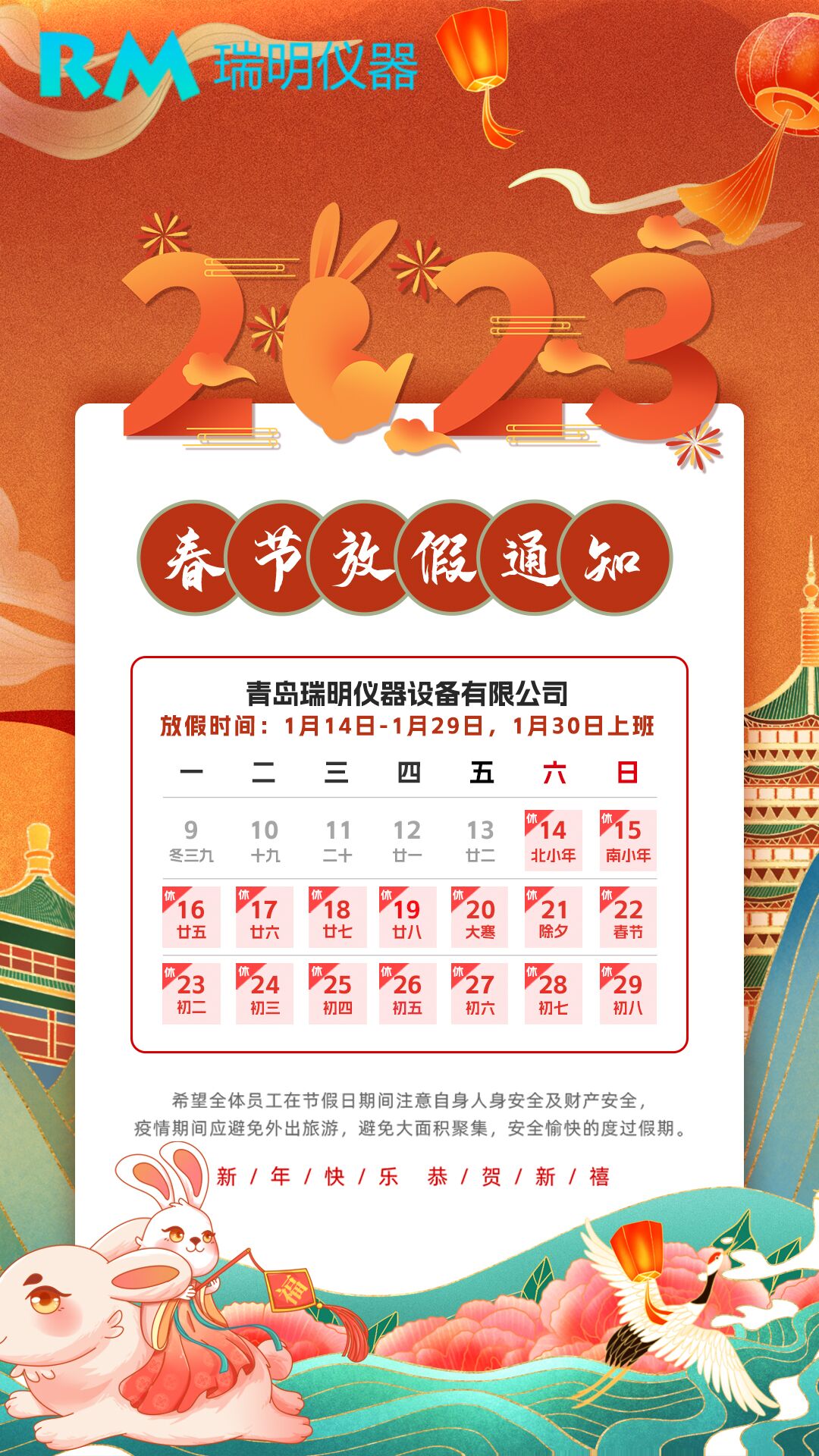 查看詳情根據(jù)相關部門關于2023年春節(jié)放假時間安排的通知,我公司安排如下: ......
